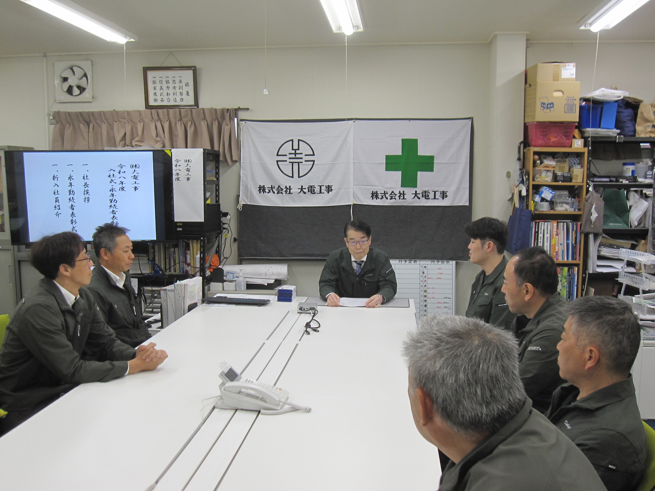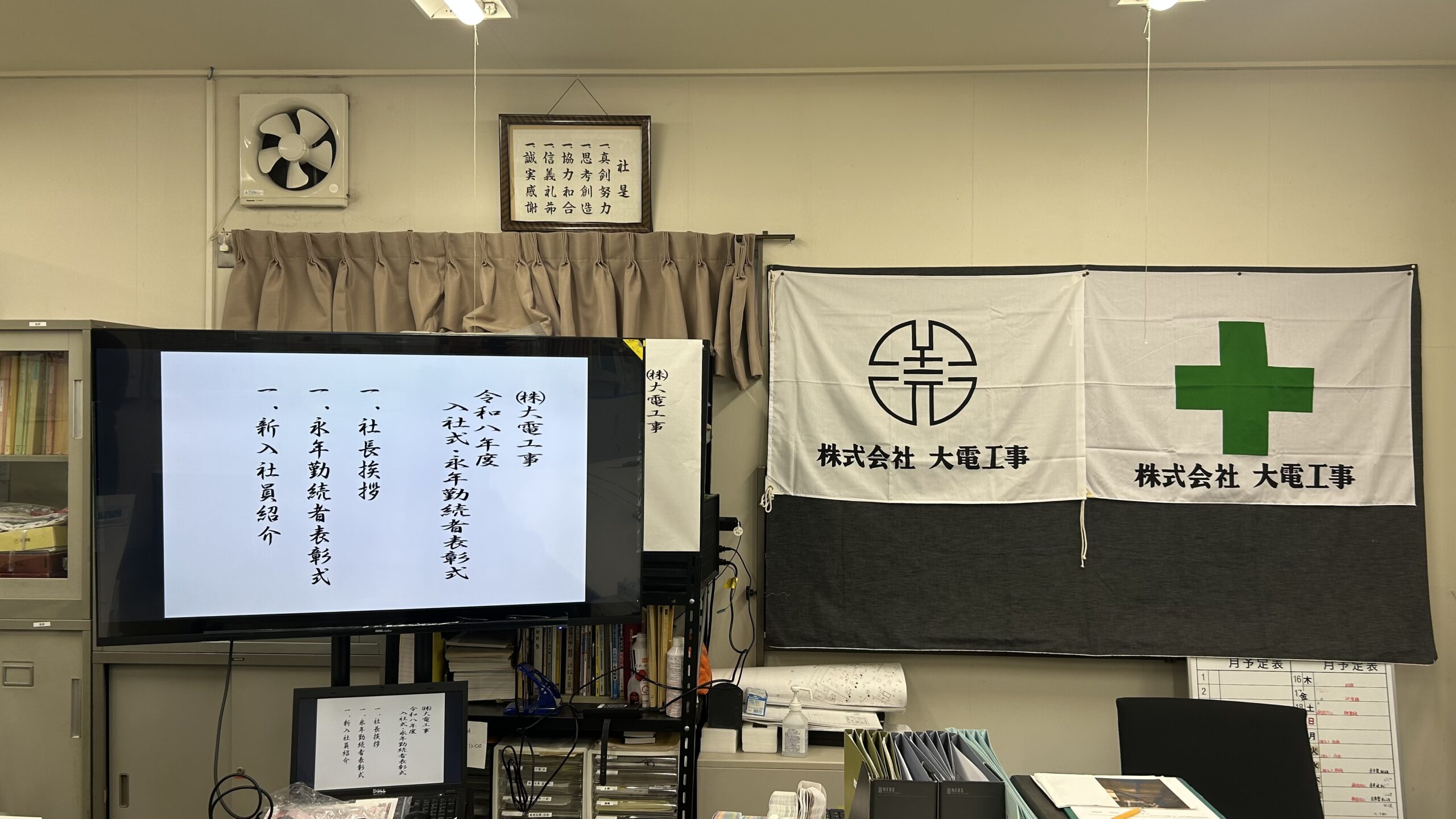今年度は新卒採用1名なので、なぜか着座式での入社式(笑)
