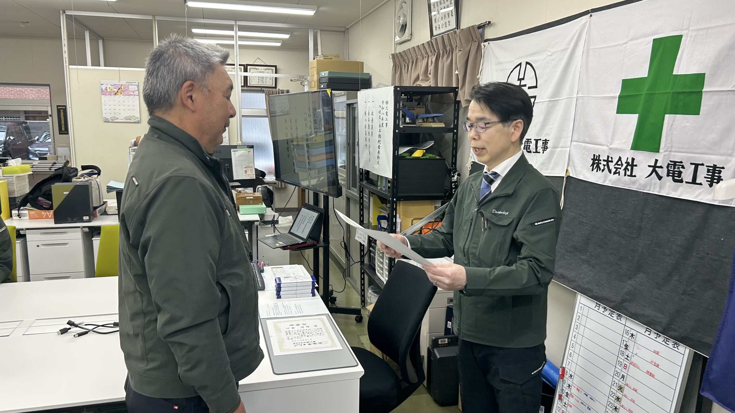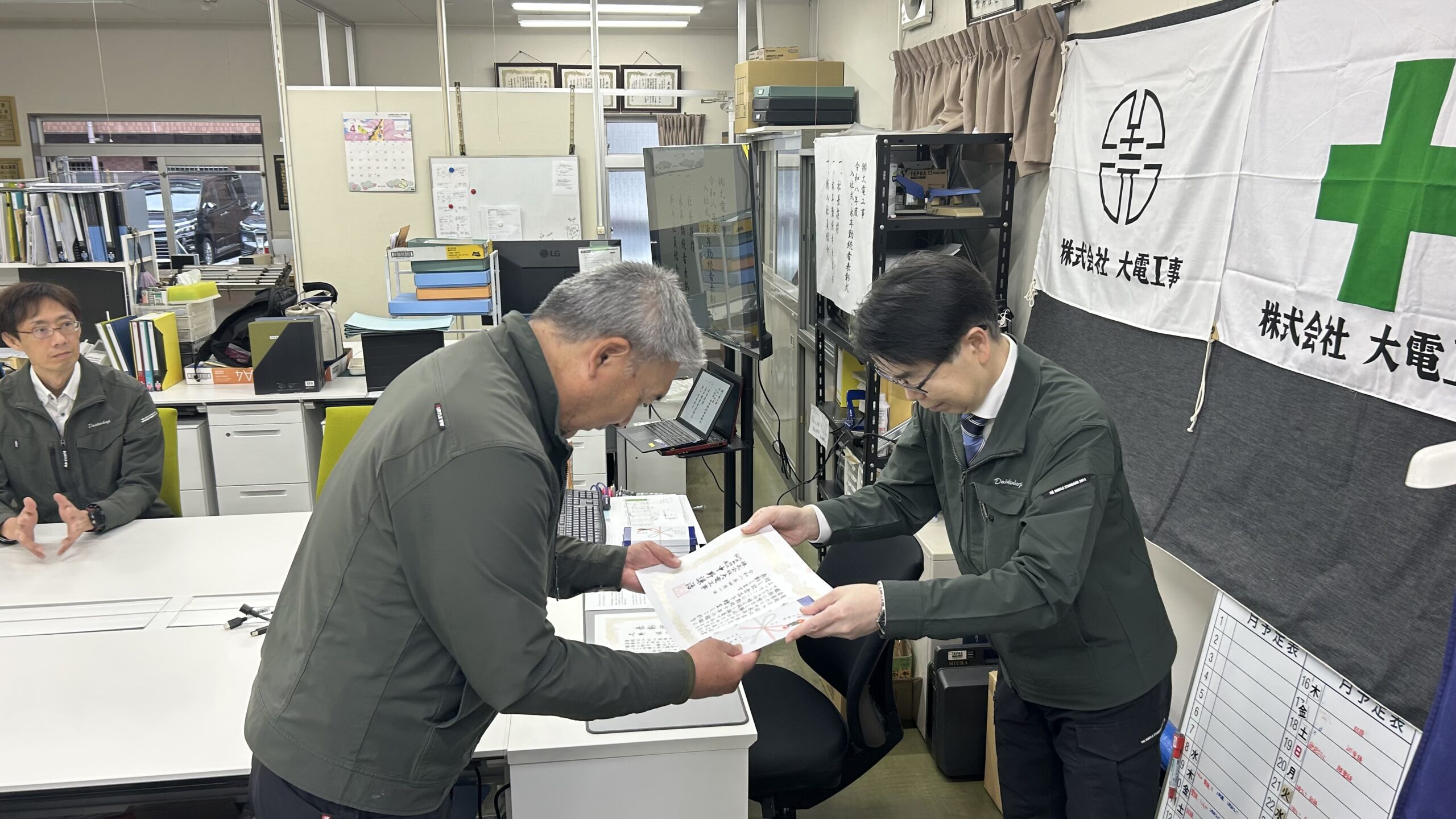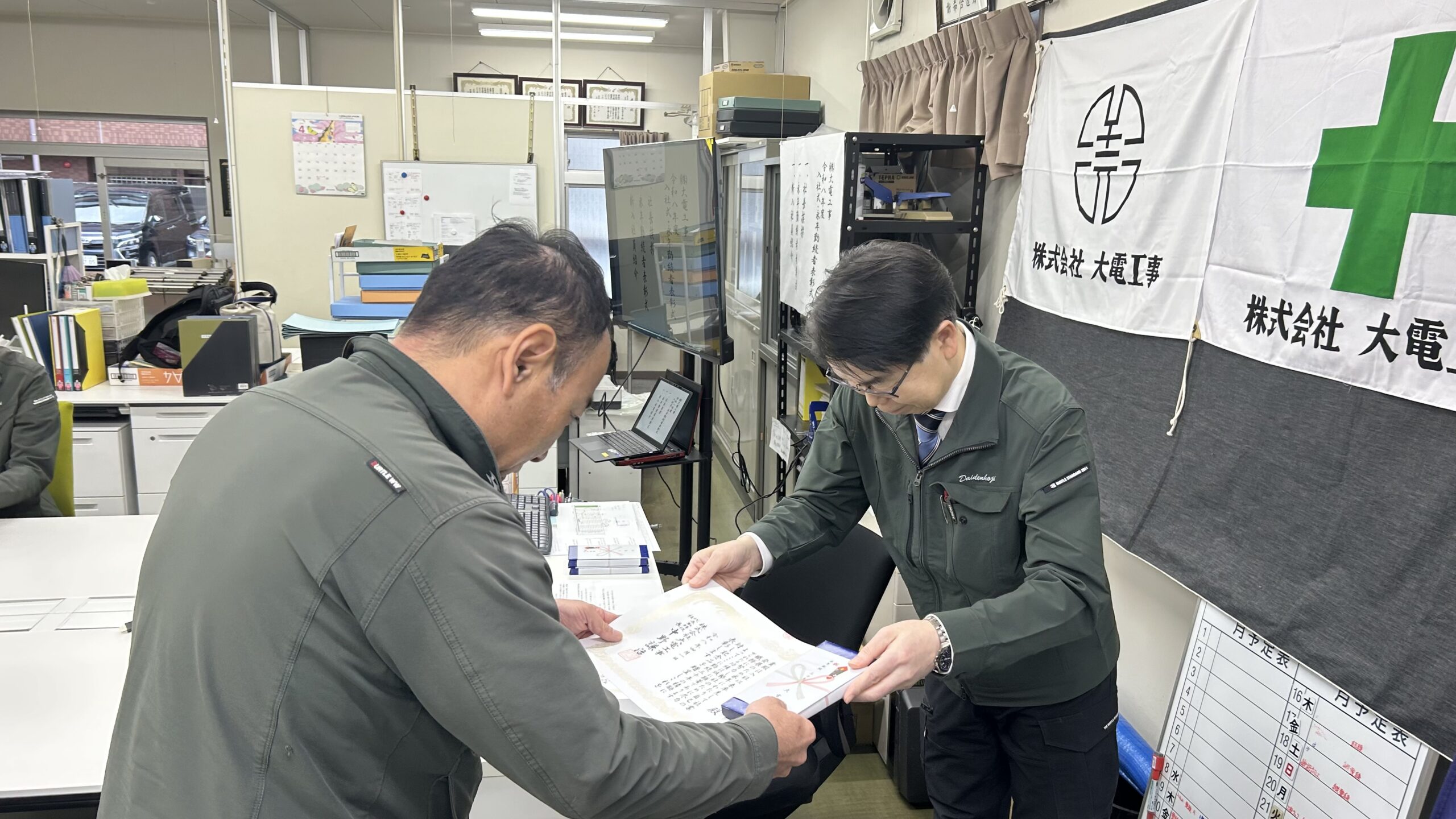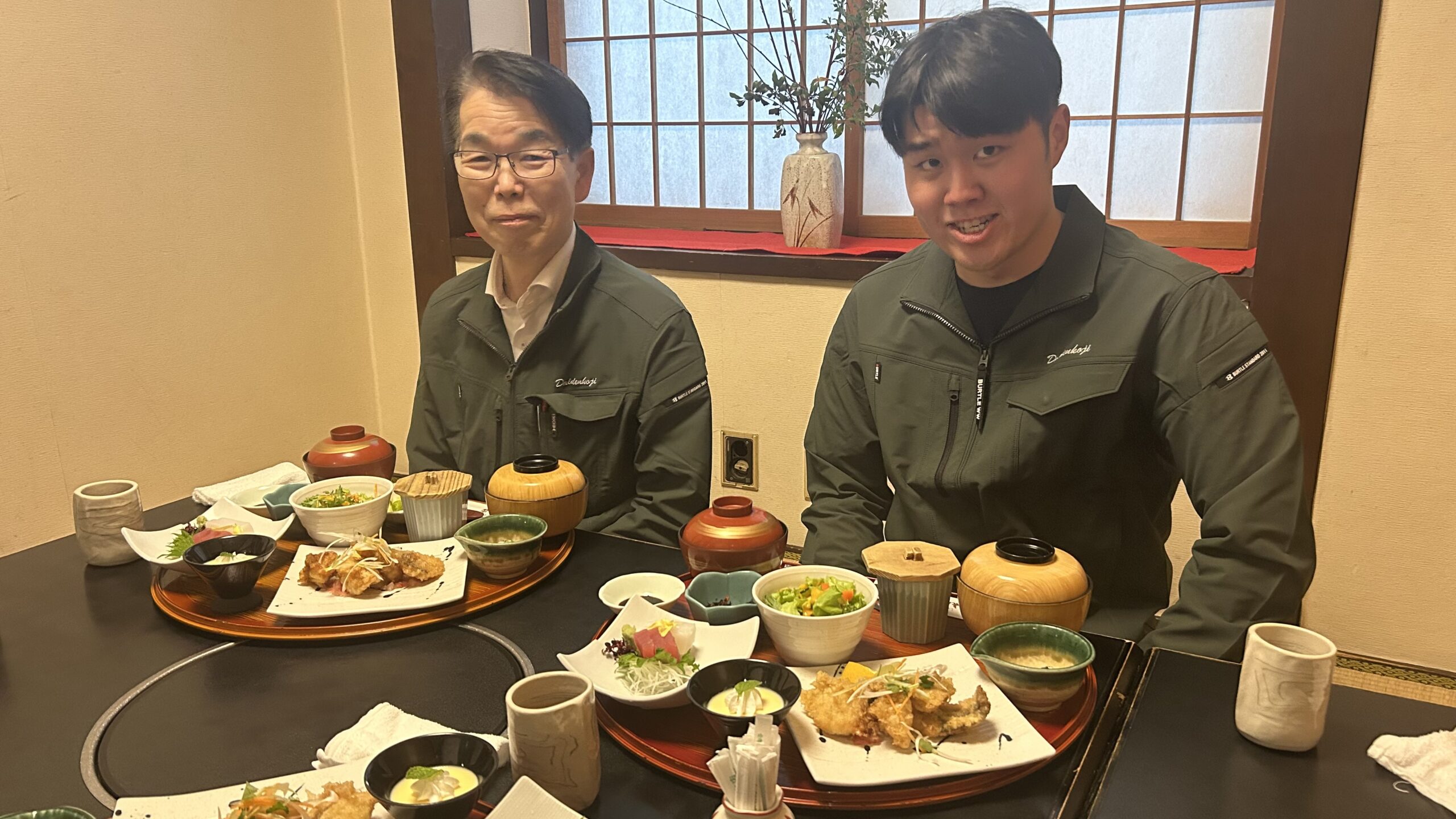 まずはじめに社長からの挨拶。 ワンツーマンなので新入生の河本くんも少し緊張気味のようです。。